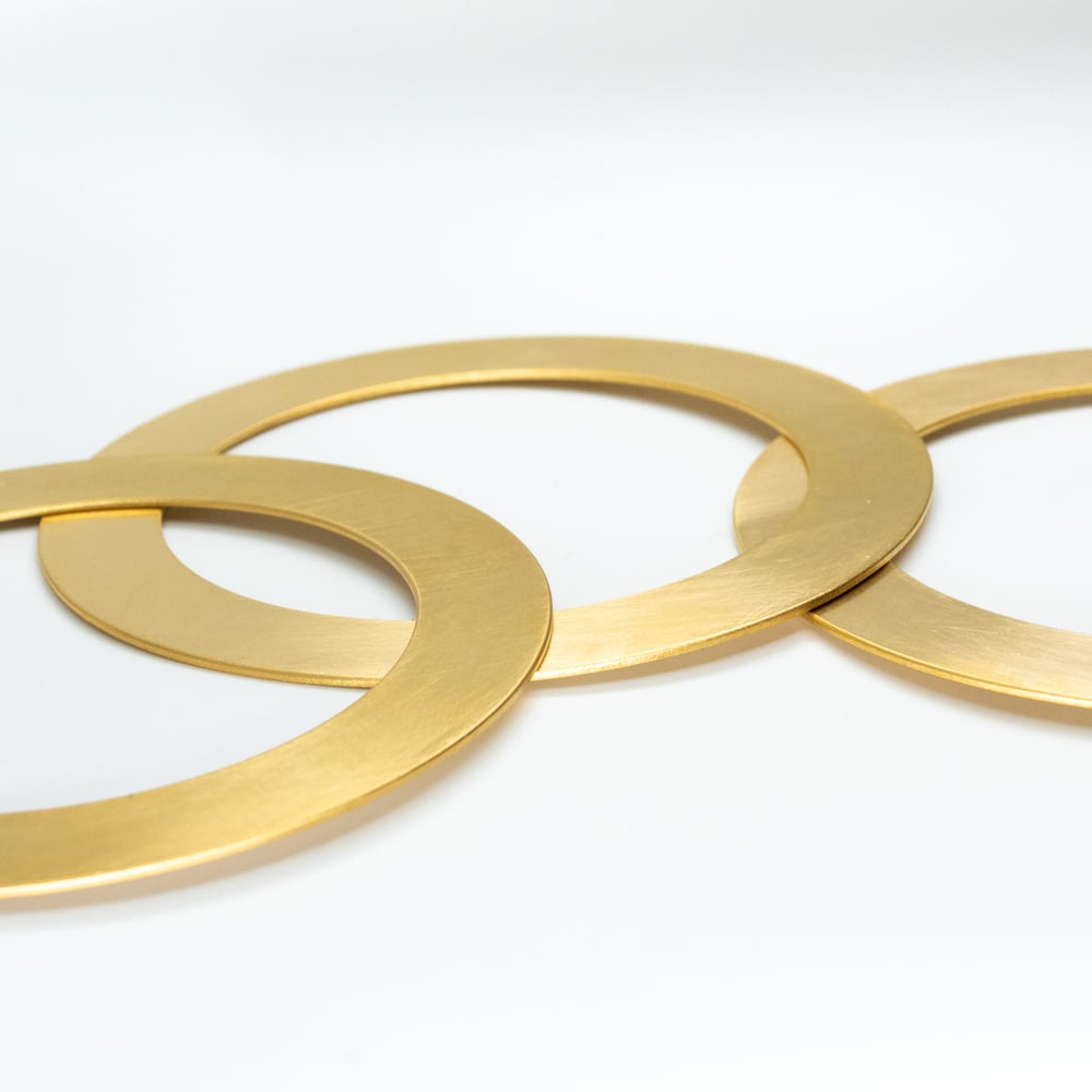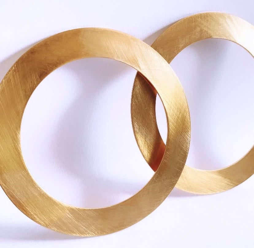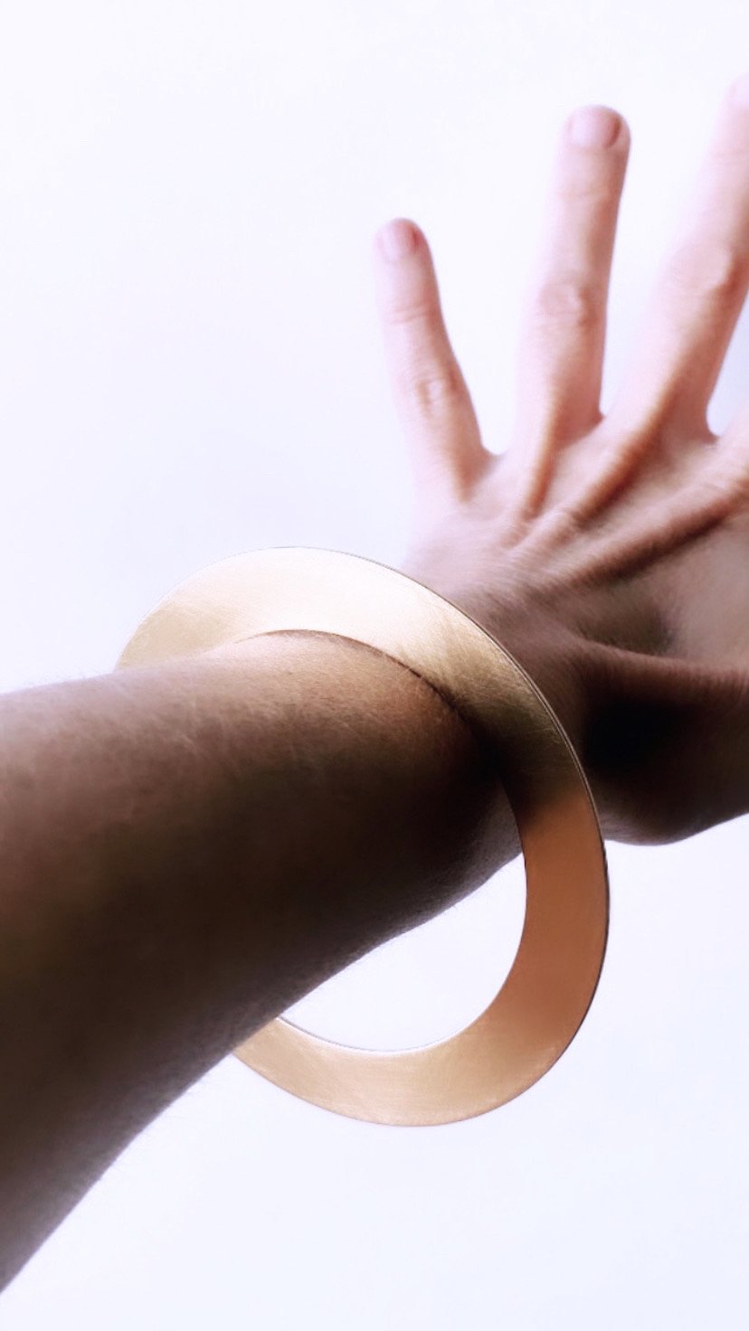 Polsera d’acer inoxidable xapada amb or de 18k. De 9cm de diàmetre exterior. Molt resistent.